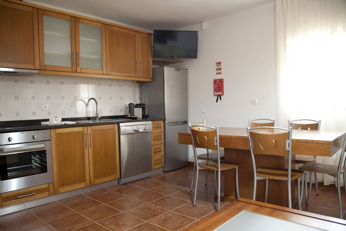 • Cozinha ampla e devidamente equipada (placa e exaustor, máquina de café, micro-ondas, máquina de lavar loiça, etc.)